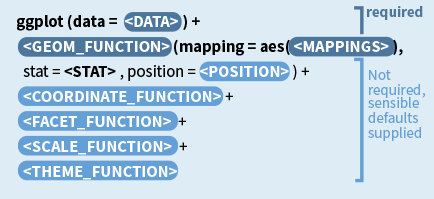 class: center, middle, inverse, title-slide # Introdução a Métodos Computacionais para Ciência Sociais ## Visualização de Dados II ### Tiago Ventura ### CPDOC-FGV --- # Revisão sobre ggplot2 .pull-left[  ] .pull-right[ Quatro "grande" etapas definem nosso trabalho de visualização: 1. **Etapa dos Dados**: Define qual banco de dados você pretende visualizar 2. **Etapa de Mapear**: Define quais **variáveis -> representações gráficas** você pretende visualizar. 3. **Etapa de Geom**: Define como você pretende visualizar. 4. **Etapa de Embelezamento**: Labels, escalas, coordenados, temas.... ] --- ## Múltiplos Geoms .pull-left[ ```r ggplot(data=gapminder, aes(y=lifeExp, x=gdpPercap)) + # Pontos * geom_point(shape=22, alpha=.2, fill="tomato2", color="black", size=2) + # Tendência * geom_smooth(fill="tomato2", color="black", size=1, alpha=.6) ``` ] .pull-right[ <img src="slides-visualizacao_II_files/figure-html/unnamed-chunk-2-1.png" width="80%" /> ] --- ## Representações Gráficas como Variáveis. .pull-left[ ```r ggplot(data=gapminder, aes(y=lifeExp, x=gdpPercap)) + * geom_point(aes(alpha=pop, * size=log(pop))) + geom_smooth(color="red") + scale_x_log10() ``` ] .pull-right[ <img src="slides-visualizacao_II_files/figure-html/unnamed-chunk-4-1.png" width="80%" /> ] --- ### Desafio: Descreva o gráfico abaixo usando o que aprendemos do ggplot e grammar of graphics. - Quantas Variáveis? Quantas Representações Gráficas? - Quais Geoms? Quais Representações Gráficas? <img src="figs/res_no_band.png" width="80%" /> --- class: middle, center, inverse # Visualização de Dados II. --- # Customização: Escalas + Labels + Temas. A idéia de customização consiste em ajustar seu gráfico para apresentá-lo da forma mais efetiva possível. Este processo vai desde definir quais cores utilizar, nomes dos eixos, background dos gráficos, posição de legendas, entre outros. Começaremos com os ajustes de escalas. --- ## Scales As funções do tipo `scale_function` controlam como você apresenta cada representação gráfica (aes) do seu gráfico. Por exemplo, estas funções permitem alterações nos eixos `x` e `y`, e nas outras representações como `color`, `fill`, `shape`, entre outros. Os exemplos mais básicos das funções `scale_` se referem aos eixos `x` e `y`. Alguns exemplos: - `scale_x_log10` e `scale_y_log10` : converte um eixo númerico para escala de log. - `scale_y_reverse` e `scale_x_reverse` : inverte os valores de x e y. - `scale_x_continuous` e `scale_y_continous`: formata x e y quando são variáveis continuas. - `scale_x_discrete` e `scale_y_discrete`: formata x e y quando são variáveis discretas. - `scale_x_date` e `scale_y_date`: formata x e y quando são variáveis discretas. --- ### Exemplos Convertando o eixo x para log10 e alterando o nome. ```r library(gapminder) library(tidyverse) # Convertendo scale x para log. ggplot(data=gapminder, aes(y=lifeExp, x=gdpPercap)) + geom_point() + scale_x_log10(name="Log gdp") ``` <img src="slides-visualizacao_II_files/figure-html/unnamed-chunk-6-1.png" width="50%" /> --- ## Limites e Separação ```r gap_grouped <- gapminder %>% group_by(year, continent) %>% summarise(m=mean(lifeExp, na.rm = TRUE)) ggplot(data=gap_grouped, aes(y=m, x=year, color=continent)) + geom_point(size=3) + geom_line() + scale_x_continuous(breaks = unique(gap_grouped$year)) + scale_y_continuous(limits = c(25,100)) ``` <img src="slides-visualizacao_II_files/figure-html/unnamed-chunk-7-1.png" width="50%" /> --- ## Ajustando Outras Representações. As funções `scale` são também muito úteis para ajustar outras representações gráficas, como fill, color, shape, size, entre outras. Alguns exemplos destas funções: - `scale_aes_manual`: altera cores, shapes, fill para cada grupo de sua variável. - `scale_aes_gradient`: altera escalas de cores de forma continua. - `scale_aes_brewer`: altera palleta de cores para representação gráfica. --- ### scale_aes_manual ```r ggplot(data=gap_grouped, aes(y=m, x=year, color=continent)) + geom_point(size=3) + geom_line() + scale_x_continuous(breaks = unique(gap_grouped$year)) + scale_y_continuous(limits = c(25,100)) + scale_color_manual(name="Continent", values = c("white", "blue", "red", "yellow", "green")) ``` <img src="slides-visualizacao_II_files/figure-html/unnamed-chunk-8-1.png" width="50%" /> --- ## Usando Paletas Usualmente, não adicionamos as cores de forma manual. O R possui paletas de cores pensadas de forma cuidadosa para representar seus gráficas. Dentre elas, minha favorita é do pacote `wesanderson`. ```r #devtools::install_github("karthik/wesanderson") library(wesanderson) pal <- wes_palette("Royal2") pal ``` <img src="slides-visualizacao_II_files/figure-html/unnamed-chunk-9-1.png" width="50%" /> --- ```r # Novo gráfico ggplot(data=gap_grouped, aes(y=m, x=year, color=continent)) + geom_point(size=3) + geom_line() + scale_x_continuous(breaks = unique(gap_grouped$year)) + scale_y_continuous(limits = c(25,100)) + scale_color_manual(name="Continent", values = pal) ``` <img src="slides-visualizacao_II_files/figure-html/unnamed-chunk-10-1.png" width="50%" /> --- ### scale_aes_gradient ```r ggplot(data=gapminder, aes(y=lifeExp, x=gdpPercap, fill=lifeExp)) + geom_point(shape=21, size=2) + scale_x_log10() + scale_fill_gradient(low="yellow", high="red", name="Life Expectancy") ``` <img src="slides-visualizacao_II_files/figure-html/unnamed-chunk-11-1.png" width="50%" /> --- ### scale_aes_brewer .pull-left[ ```r # Exemplo 1 ggplot(data=gapminder, aes(y=lifeExp, x=continent, fill=continent)) + # Pontos geom_boxplot(size=1.5, alpha=.5) ``` <img src="slides-visualizacao_II_files/figure-html/unnamed-chunk-12-1.png" width="100%" /> ] .pull-rigth[ ```r # Exemplo 2 ggplot(data=gapminder, aes(y=lifeExp, x=continent, fill=continent)) + # Pontos geom_boxplot(size=1.5, alpha=.5) + * scale_fill_brewer(palette = "Set1") ``` <img src="slides-visualizacao_II_files/figure-html/unnamed-chunk-13-1.png" width="50%" 